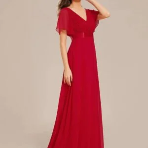 Elegant Evening Dresses Short Sleeves Sequin High Low V-Neck Midi 2024 Ever pretty of Sequin A-line Burgundy Bridesmaid Dress
