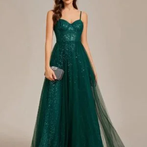 Plus Size Prom Dresses Long Sexy V Neck A-Line Sequin With 3/4 Sleeve 2024 ever pretty of Dark Green Bridesmaid dress Women