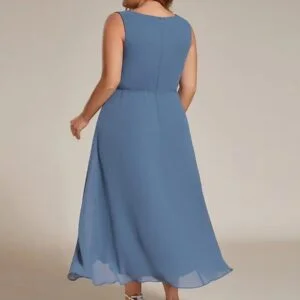 Elegant Evening Dresses V-Neck High Low Ruffles Hidden zipper Mid-calf 2024 Ever Pretty of Chiffon Orchid Bridesmaid Dresses