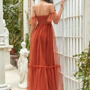 Elegant Evening Dress Tulle Strapless A-Line Ruffles Sleeves Floor Length Backless Ever Pretty 2024Prom Dresses Vestidos De Gala