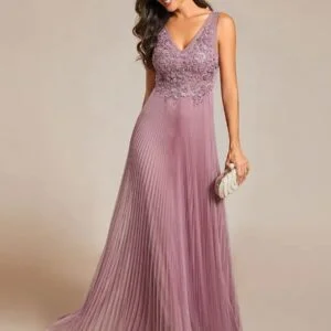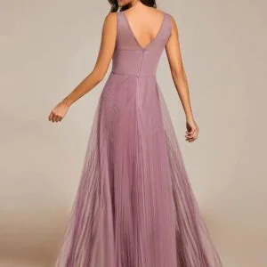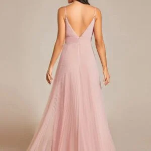 Elegant Evening Dresses Deep V Neck Spaghetti strap Flounce Sleeveless Mesh2024 Ever Pretty of Pink Bridesmaids Dresses