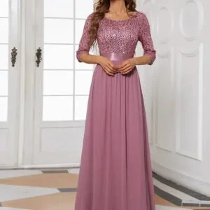 Elegant Evening Dresses Long A-LINE O-Neck Three Quarter SLeeve Lace Gown 2024 Ever Pretty Of Orchid Simple Prom Women Dress