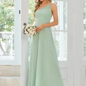 Elegant Evening Dresses One Shoulder Beaded Hidden zipper Floor-Length Ever Pretty 2024 of A-line Mint Green Bridesmaid Dress