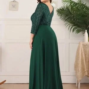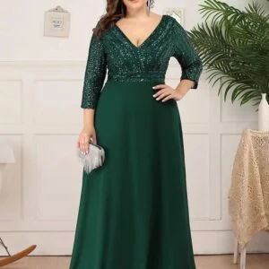 Plus Size Prom Dresses Long Sexy V Neck A-Line Sequin With 3/4 Sleeve 2024 ever pretty of Dark Green Bridesmaid dress Women