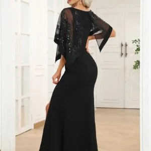 Elegant Evening dresses Round neck Side Split Floor Length 2024 ever pretty of Simple Mother of Black Bridesmaids Dresses