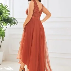 Plus Evening Dresses Sleeveless High-Low V Neck Tulle 2024 Ever pretty of Prom Dresses with Burnt Orange Sequin Appliques Gown