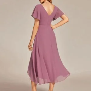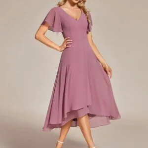 Elegant Evening Dresses V-Neck High Low Ruffles Hidden zipper Mid-calf 2024 Ever Pretty of Chiffon Orchid Bridesmaid Dresses