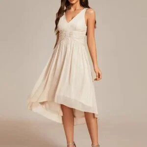 Elegant Evening Dresses V-Neck High-Low Glitter Sleeveless with Pleated 2024 Ever Pretty of Charcoal Wedding Guest Dress