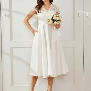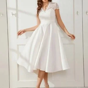 Elegant Evening Dresses V-neck Women’s Short Sleeves Knee-Length 2024 Ever pretty of Lace A-line White Cocktail Dresses